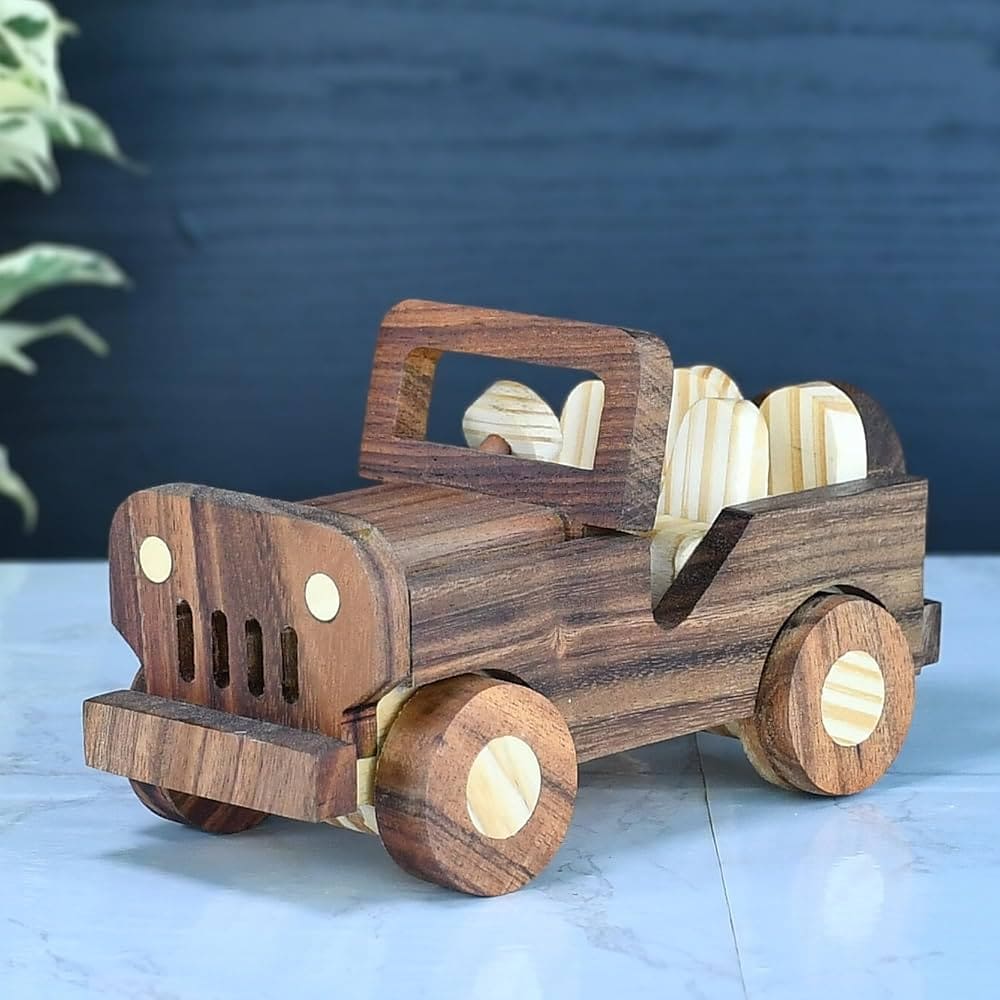 A handcrafted wooden toy car made with child-safe materials. Durable and perfect for imaginative play.